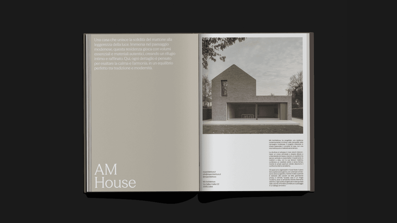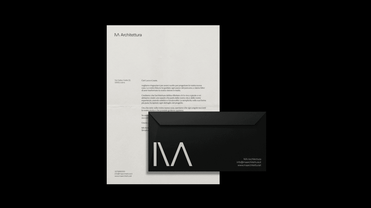 Nessun artificio superfluo, nessuna sovrastruttura: il brand riflette la purezza del segno architettonico di MA Architettura, mettendo al centro l’equilibrio, la proporzione e il valore del dettaglio. Il linguaggio è diretto e raffinato, capace di trasmettere con naturalezza la qualità del lavoro dello studio. Un’identità visiva che non impone, ma accompagna, lasciando spazio alla vera protagonista: l’architettura.